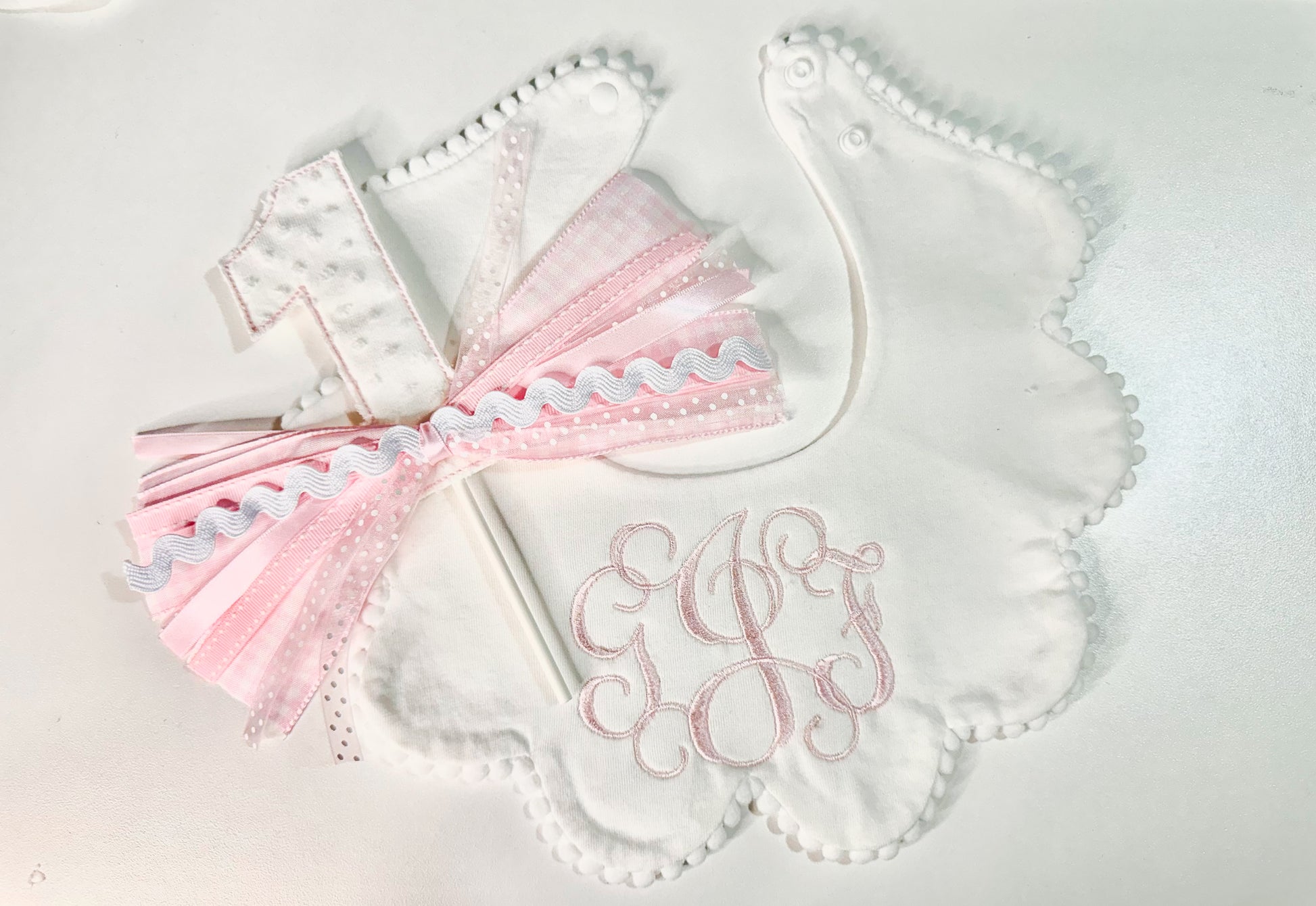 Please indicate what color thread you’d like to use for the number 1 and I will match the ribbons to thread color as well!